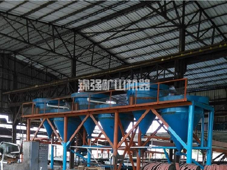 在液面中心設(shè)置給礦圓筒,圓筒底緣沒入液面以下若干深度。礦漿沿切線方向向給入中心圓筒,經(jīng)緩沖后由底緣流出。流出的礦漿呈放射狀向周邊溢流堰流出。在這一過程中,沉降速度大于液流上升分速度的粗顆粒將沉在槽內(nèi),并經(jīng)底部沉砂排出。細(xì)顆粒隨表層礦漿進(jìn)到溢流槽內(nèi)。分泥斗給礦粒度一般小于2mm。分級粒度為75或更細(xì)些。